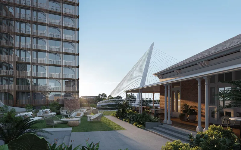 Consolidated Properties Group的Monarch Residences承诺打造一个独特的河畔社区,并对该地块进行“一生一次”的改造。该项目将在其场地上整合休闲区、自行车道和河畔公园,并增加一座绿色桥梁,将河对岸的房产与繁华的西区连接起来。计划还保护了一座拥有150年历史的古宅Middenbury House,将其重新改造并作为餐厅和咖啡馆向公众开放。