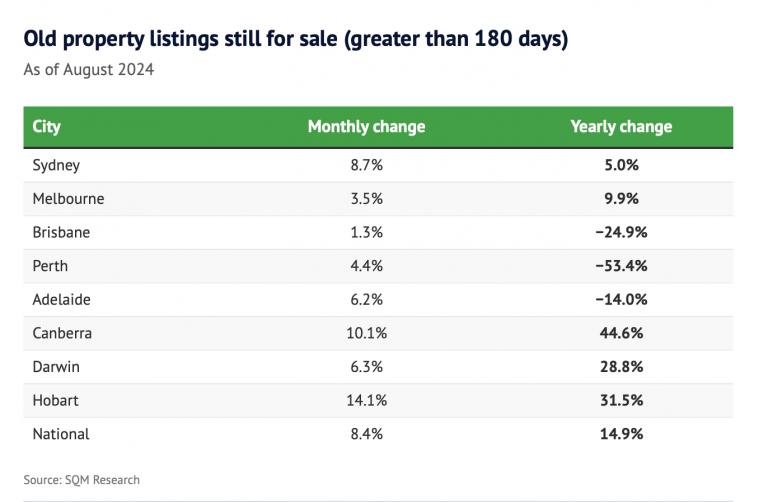 SQM Research的数据显示,8月份全澳的旧房源(在市场上挂牌超过180天)数量比去年同期高出14.9%。