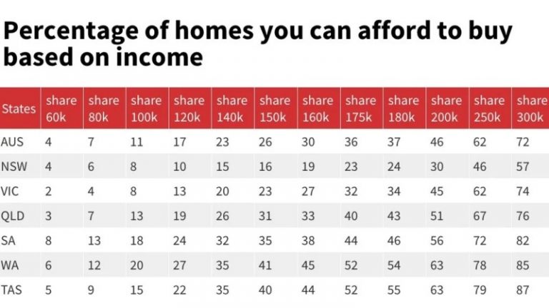 PropTrack的住房负担能力报告评估了整个收入分配中的家庭能够负担得起的住房比例。