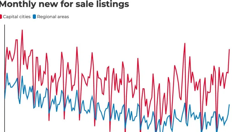 PropTrack 经济研究主管卡梅伦·库舍尔 (Cameron Kusher) 表示,房屋挂牌数量激增的因素包括近期价格强劲上涨,促使房主升级住房,而其他人则因长期高利率而被迫出售住房。