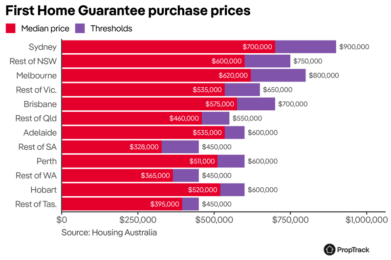 这也许并不奇怪——获得担保的房屋的典型购买价格往往远低于门槛,这表明大多数从该计划中受益的人并没有以最高的价格购买,这可能与严格的收入限制有关(个人 125,000 澳元或联合申请人 200,000 澳元)。