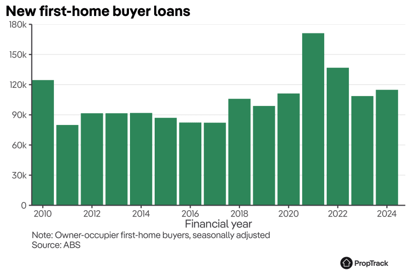 澳大利亚住房局报告称,2023-24 财政年度,首次购房者获得了 36,100 笔担保,占首次购房者贷款总额 115,000 笔的近三分之一。