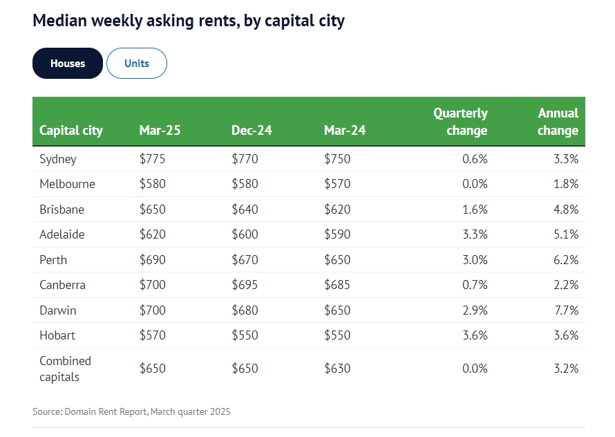 Domain 最新的 3 月份季度租金报告显示,目前一套典型公寓的租金为每周 575 澳元,比一年前上涨了 4.5%。