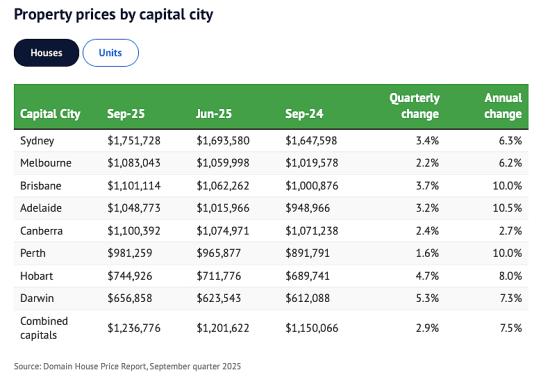 根据本周四发布的《Domain房价报告》: