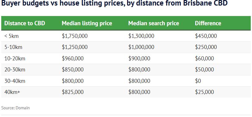 报告显示,距离布里斯班中央商务区五公里范围内的独立屋买家,普遍将搜索预算设定在130万澳元,而该区域房屋挂牌价中位数已达175万澳元,价差达45万澳元。在五至十公里范围内,125万澳元的挂牌中位数同样超出买家预算25万澳元。