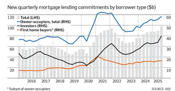 澳洲统计局周三发布的数据,新批准的投资者房贷从6月到9月上升17.6%,创自2021年6月以来最大季度增幅,使投资者房贷承诺总额增至创纪录的398亿澳元。