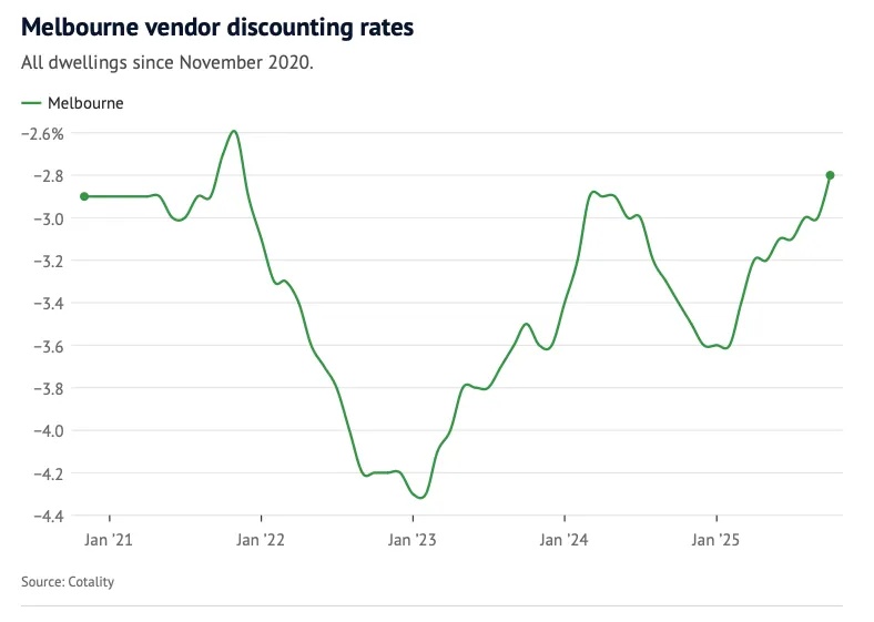 卖家折让幅度的收窄表明墨尔本房市的销售环境正在回暖,也可能反映出卖家对市场变化的更好适应。