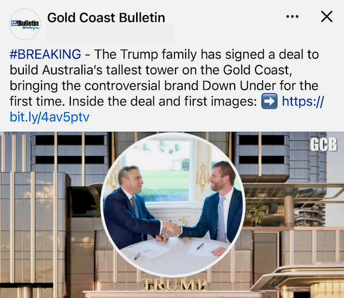 据最新消息,特朗普家族已签署协议,计划在澳大利亚昆士兰州黄金海岸建设一座全新的超高层地标塔楼。该项目一旦落成,将成为澳洲最高建筑,同时也是特朗普品牌首次正式进军澳大利亚市场。此次合作标志着这一备受争议却极具商业影响力的国际品牌正式进入“南半球市场”。项目预计将落户黄金海岸核心区域,结合高端住宅、酒店及综合商业功能,打造集奢华居住、度假与娱乐于一体的城市新地标。