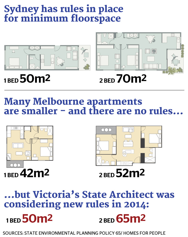 维州并没有最小公寓面积方面的规定,但Wynne先生担心最近公寓建设的热潮可能导致“狗屋”(dog box)的增多,即那些很少甚至没有储藏或户外空间的公寓。