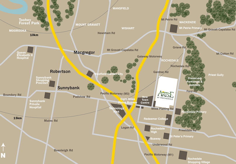 Arise社区与以50亿澳元打造的Rochedale城镇中心仅有一街之隔,中心配备非常齐全,今年年底大型超市Coles将在这里建设,最大程度的方便周围的居民。 教育方面资源同样丰富,两公里辐射范围内,小学到高中一应俱全。昆州最好的私校之一Redeemer Lutheran College(救世主路德学院)就在附近,Griffith University格里菲斯大学,15分钟直达。