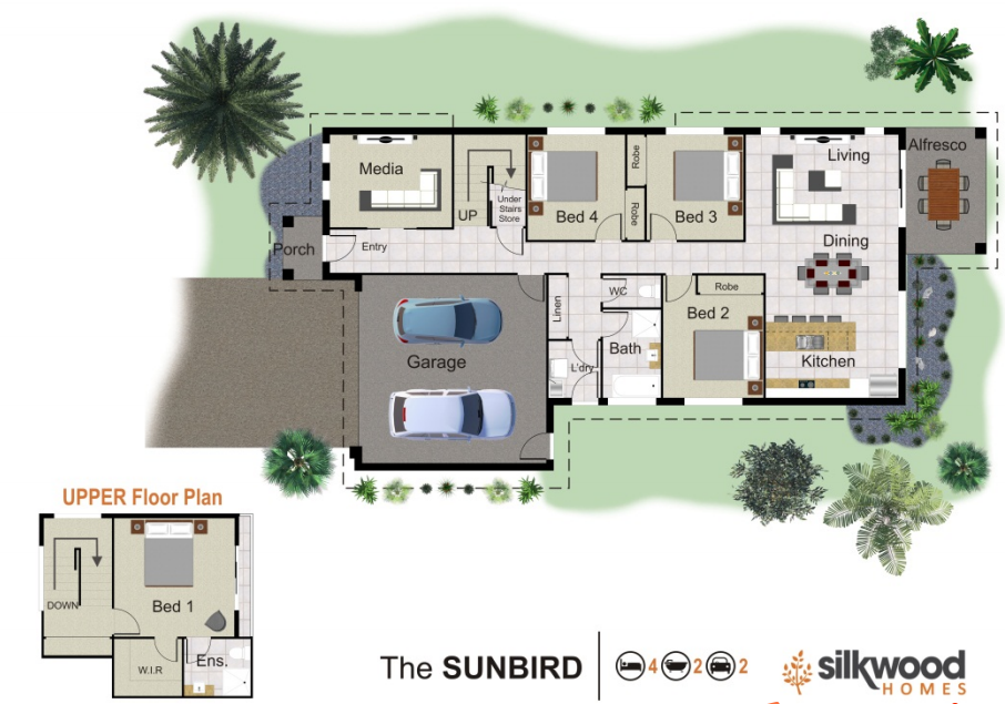 A. 户型的名称:Sunbird (4房2卫2车位)