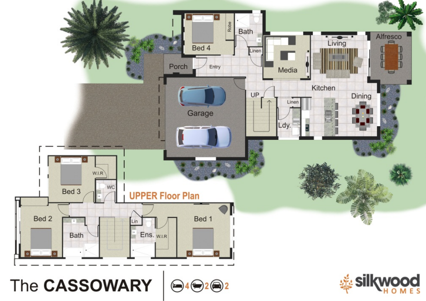 B. 户型的名称:Cassowary (4房2卧室1书房2车位)