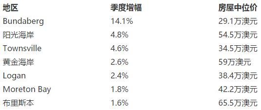 统计数据还显示,去年第四季度,Townsville的房价增幅达到了4.6%,当地房屋中位价达到了34.5万澳元。其他地区的增幅和中位价分别为黄金海岸(2.6%,59万澳元),Logan(2.4%,38.4万澳元)以及Moreton Bay(1.8%,42.2万澳元)。