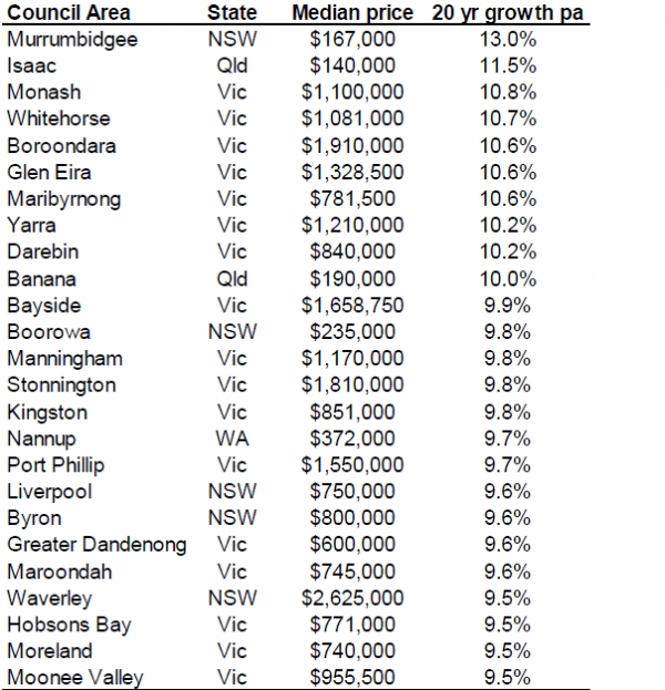 第二张表格介绍的则是20年来住房中位价增长速度的倒数25名。相比较第一张表格来说,这张表上的增长数字就没有那么“触目惊心”。通过这两张表格,我们可以对全澳的房价趋势有一个基本的把握。那么在今后,无论是买房还是投资都可以参考一下相关信息。