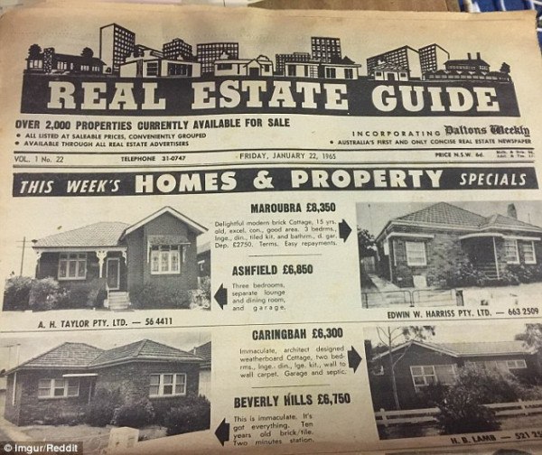 如果你想知道悉尼房价到底有多疯狂,看一看1965年的房地产指南就清楚了,它是反映悉尼房价50年来变化的最好证据。