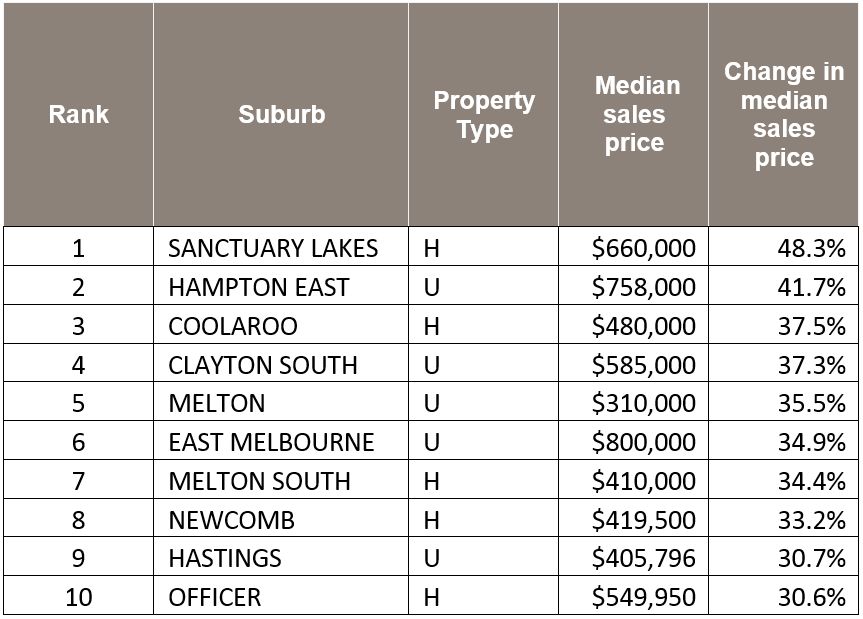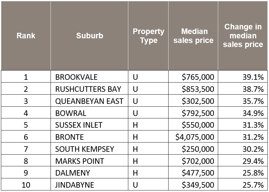 受悉尼的涟漪效应影响,乡镇地区占据了前10名的多数,这并不奇怪。