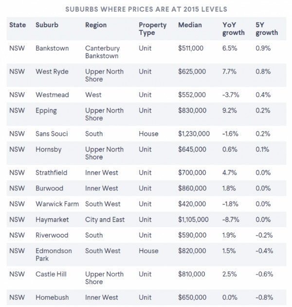 由于房市(尤其是悉尼及墨尔本)仍未完全摆脱疫情的影响,部分地区房价处于2015年的水平,甚至更低。