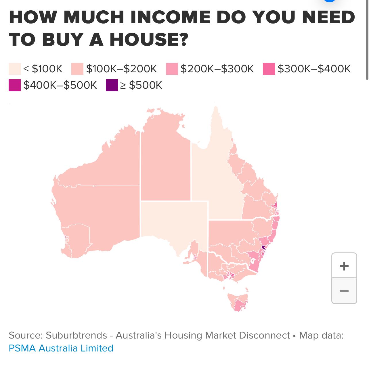 它发现澳大利亚的中位数为9.1,这表明澳大利亚人需要赚取301,769澳元才能负担得起自己的房子。