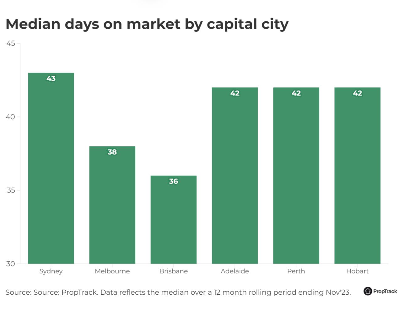 在首都城市中,布里斯班的房屋销售速度最快,只有36天,但珀斯的房产出售时间下降是最大。