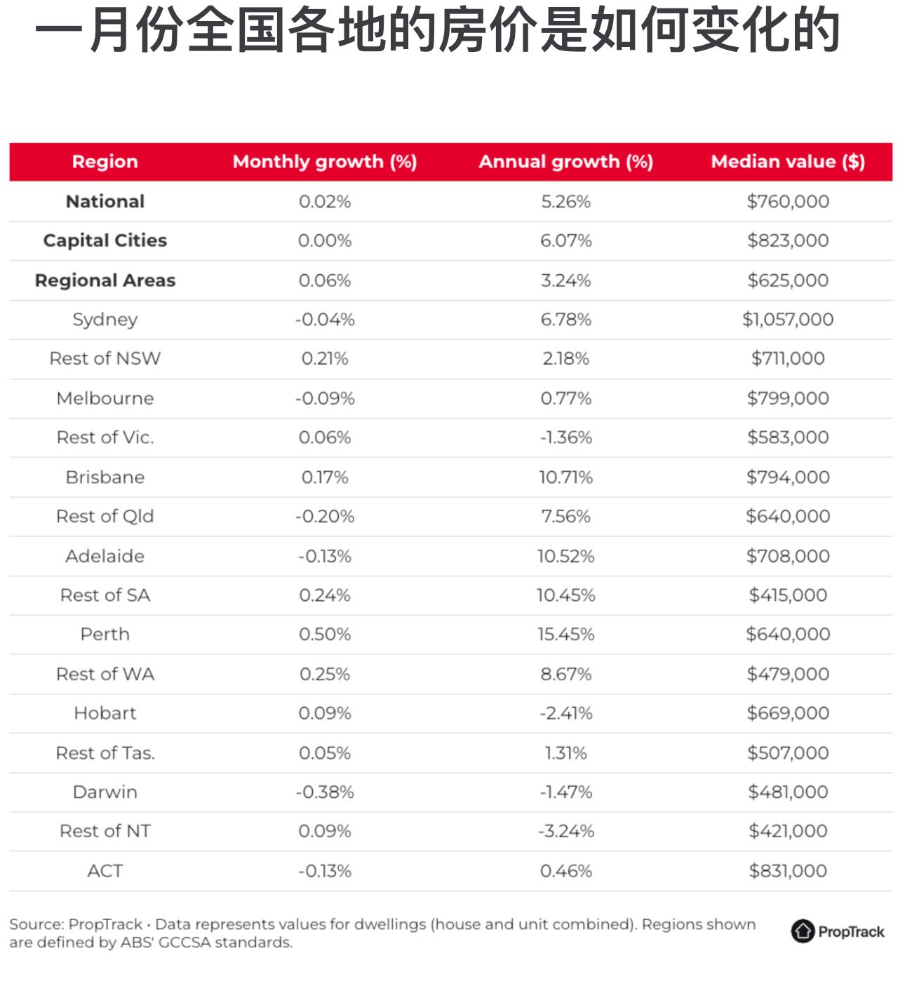但1月份价格增幅再次最强劲的是珀斯,价格上涨了0.5%。