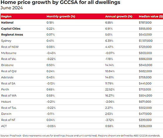 根据最新的PropTrack 房价指数,6月份全澳住宅价格上涨 0.18%,过去一年上涨了6.55%。