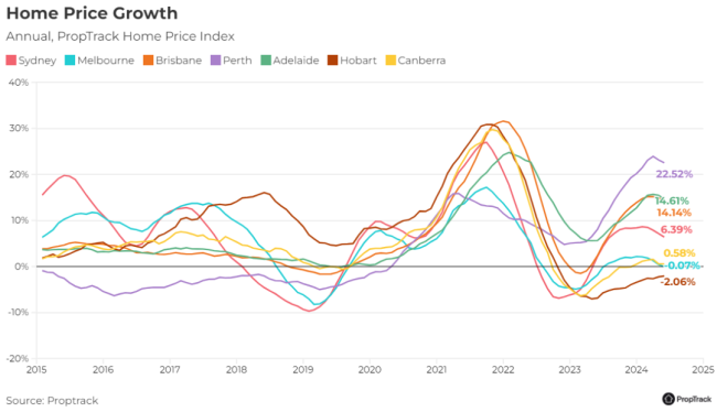 根据PropTrack 房价指数,与去年同期相比,房价上涨了 14.14%。