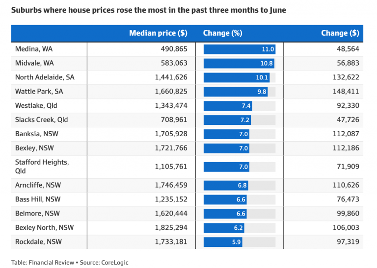 相比之下,一些独立屋价格低于200万澳元的郊区在短短三个月内上涨了7%。