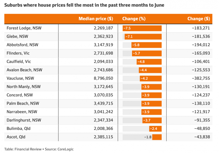 CoreLogic的数据显示,由于承受力差和利率的不确定性抑制了需求,悉尼一些中位价在200万澳元或以上的郊区的独立屋价格在过去三个月内下跌了7.5%之多,数据显示,悉尼五分之二以上的高价郊区都出现了价格下跌。