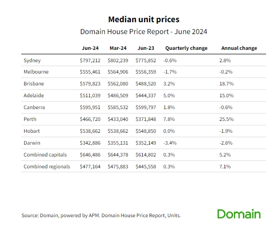 不过,对于那些想买公寓的人来说,这是一个好消息。除阿德莱德和堪培拉外,所有首府城市的房价增长都出现放缓。悉尼公寓价格本季度出现一年半以来的首次下跌,墨尔本公寓价格则录得自 2023 年 3 月以来的最大季度跌幅。