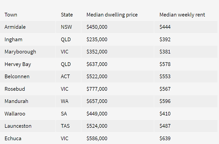 昆州的Ingham和维州的Maryborough分列第二和第三,两地的中位房价均低于36万澳元,中位周租低于400澳元。