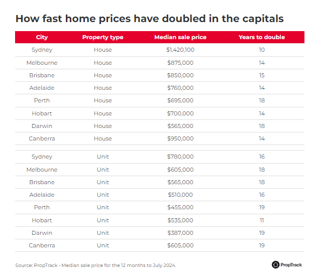 人们长期以来认为,房地产价格每七到十年就会翻一番,但最新数据显示,澳大利亚各地的这一数字差异很大。