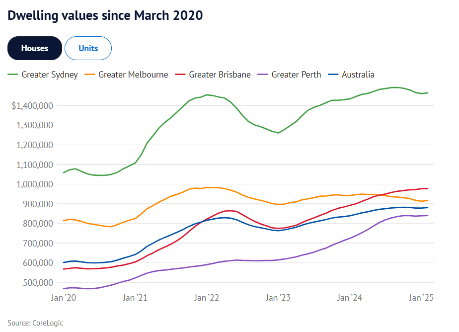 与悉尼相比,中等规模首府城市的房价涨幅更为显著,而悉尼的涨幅则超过了墨尔本。