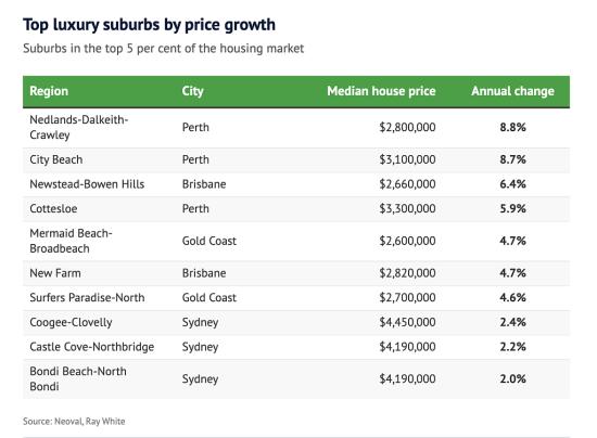 相比之下,黄金海岸和珀斯因人口增长推动房价上涨。“如果你从悉尼搬到黄金海岸,着眼于高端市场,会发现这里的房价相当实惠。”
