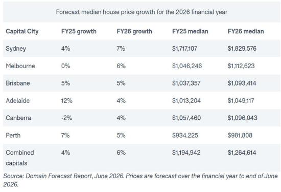 除堪培拉外,预计所有首府城市都将在2026财年创下房价增长新高,悉尼的房价增幅将超过当地的平均工资。