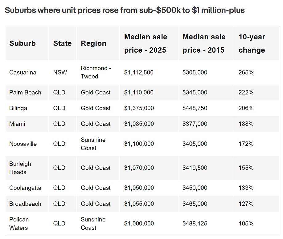 相反,过去10年房价飙升最快的大多是靠近海滩的可负担沿海城区,与昆州出现的趋势类似。