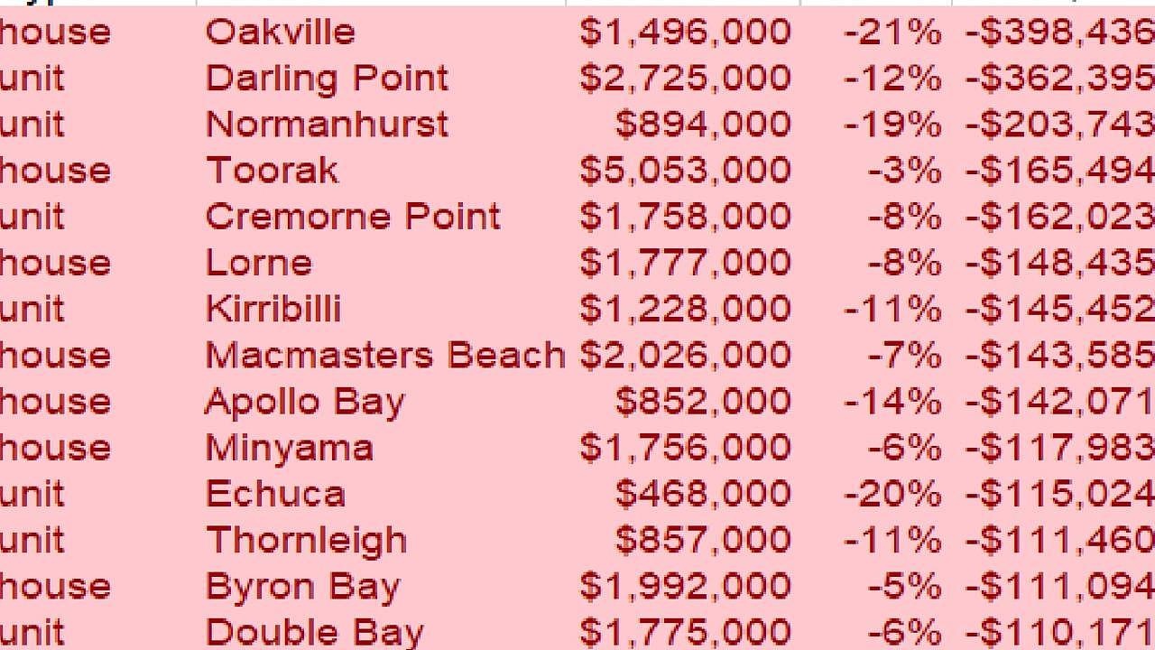 根据PropTrack发布的截至12月季度房价数据,在对全澳5000多个区进行深入分析后发现,受增长率骤降或停滞影响,共有139个地区的中位房价出现了金额缩水。