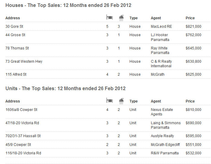 如下是Parramatta的中价位图: