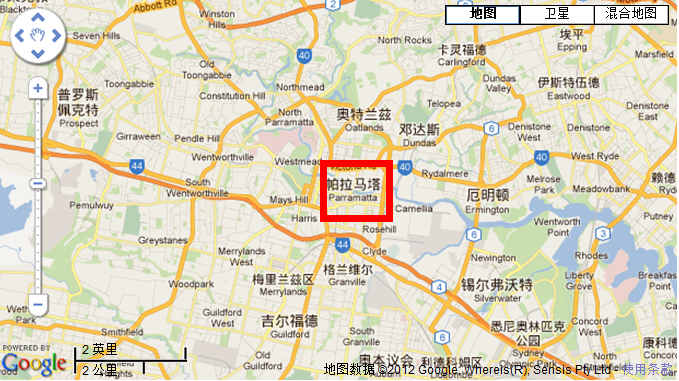 Parramatta在悉尼的位置图: