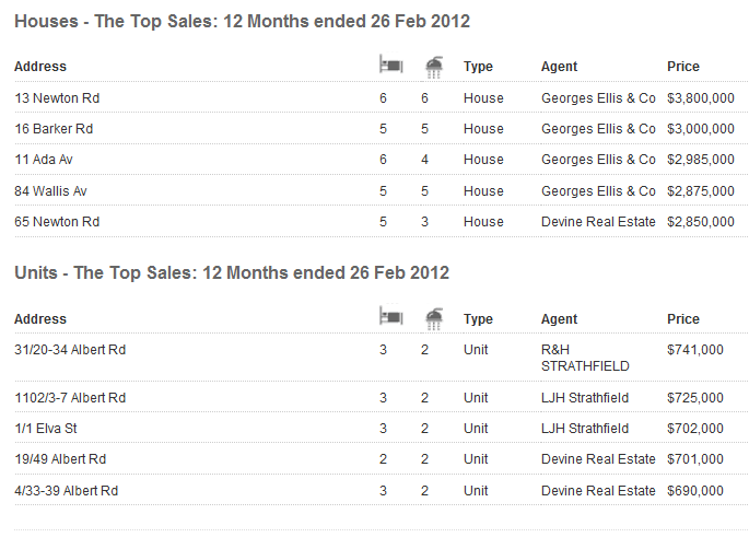 如下是Strathfield的中价位图: