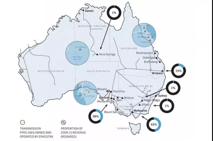 APA在澳洲拥有1.5万公里的燃气管道,其网络为130万个家庭和企业提供服务,主要分布在东海岸。APA和Envestra两个公司在澳洲燃气输送行业中遥遥领先。