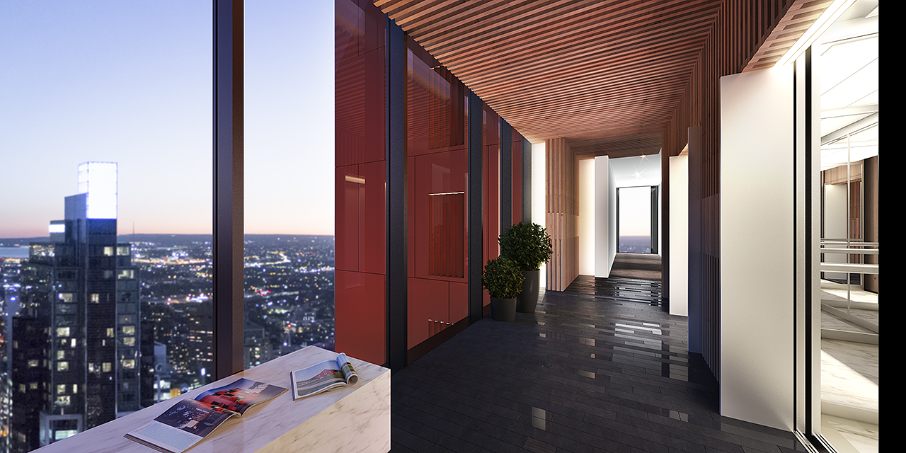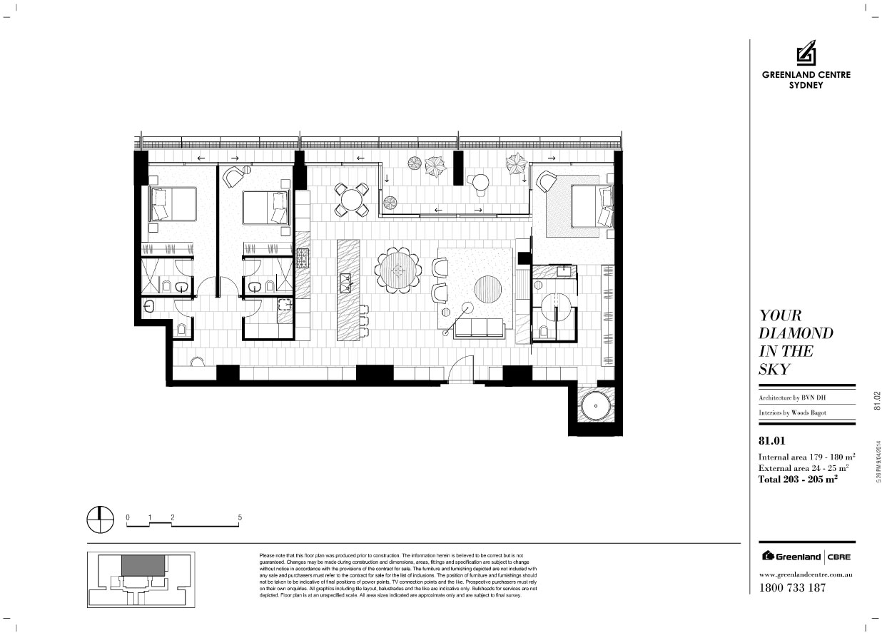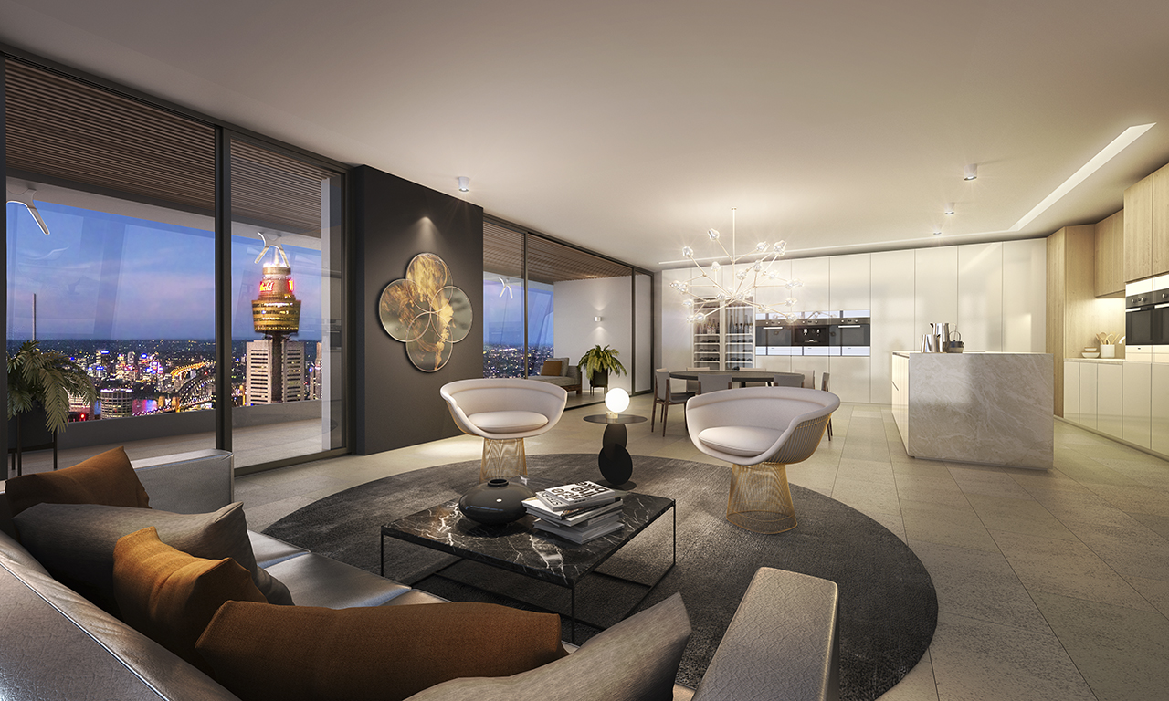 绿地中心是悉尼的新地标,235米的高度已达到市中心规划高度的极限,俯瞰海德公园,悉尼港,将绝佳美景尽收眼底,自身配套5星际精品酒店,底层商业,奢装公寓等为一体的优质住宅项目。82-130平米两房、三房全新登场,更有顶层penthouses奢华空中别墅。套内均价约为澳币$20000/平方米,约合人民币120,000元/平方米(按照超高层70%得房率计算,折合建筑面积人民币84000元/平方米),相对中国北上广的市中心动不动10万多一平米的单价,绝对有更大的升值空间。项目总高235米,共85层,一层是挑高入户大堂,2至8层是停车场,9至10层是业主专属会所,11-85层精装住宅公寓,每层配备7部电梯。越高每层的户数就越少,主要看户型大小,低区的每层楼大概11户左右,高区每层3-6户。