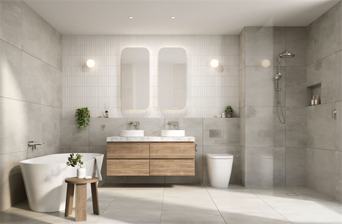 独立式浴缸和超大淋浴间营造出酒店式的奢华感,而时尚的双梳妆台*和定制曲面镜则确保您的日常活动尽享愉悦。