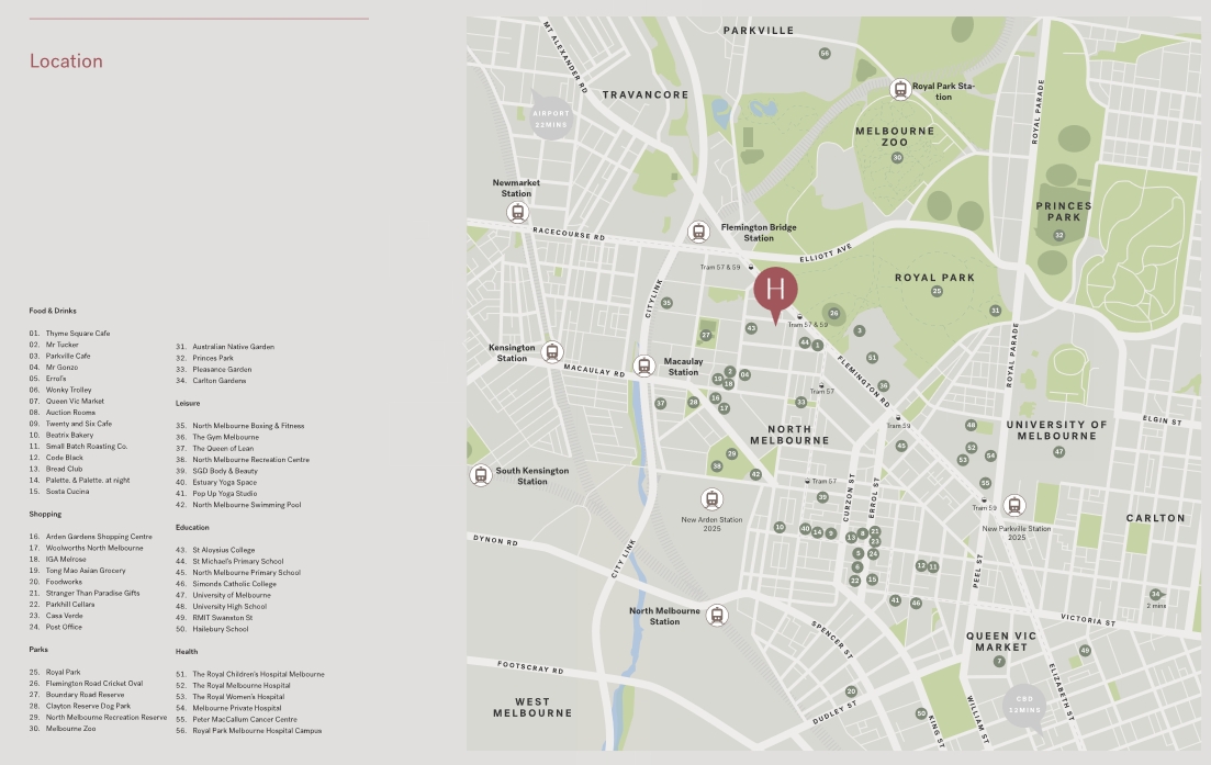 Hotham Hill 地理位置优越,位于墨尔本历史最悠久的郊区之一,居民可以尽情享受北墨尔本的活力文化。距离中央商务区仅几步之遥,周围环绕着丰富的历史遗产,繁华的零售、文化和餐饮区更是锦上添花。附近还有众多公园和休闲区,是远离城市喧嚣的完美去处。不断变化的季节性景观,包括参天大树、自行车道、历史地标和鲜花盛开的花园,为居民提供全新的城市生活体验。