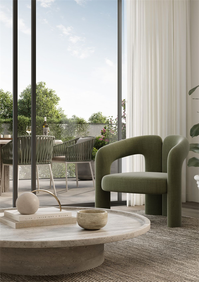 每套住宅都充满奢华和精致,经过精心设计,符合最高标准。室内色调讲述了一个平静和真实的连贯故事。光滑的天然大理石表面、活泼的木材饰面和舒缓的中性色调体现了轻松的风格。