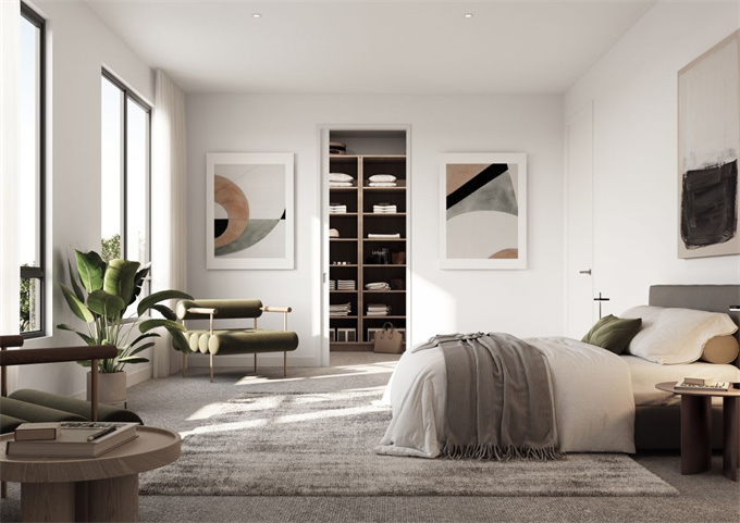 宽敞的卧室套房以精美的细节和柔软的材料为特色,让您休息和放松。纯羊毛地毯踩上去感觉很棒,而长袍则为您的所有衣物提供了充足的空间。在部分住宅中,天然木质色调构成了一个华丽的主步入式衣橱,让您轻松完成早晚的例行事务。