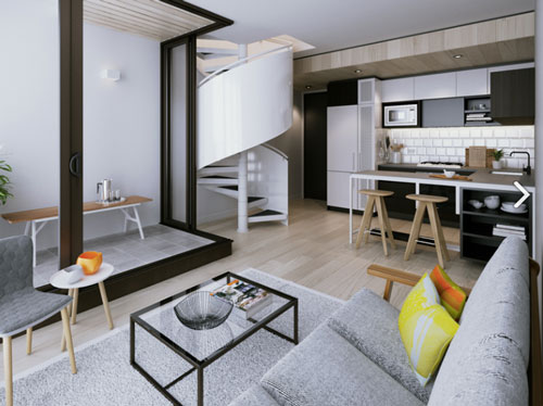 部分1房和2房是LOFT(复式),1楼是客厅,2楼是卧室,3房可以自己设计户型图,设计好开发商按您自己的设计建造。2房的户型2个房间都是明房,附近没有高楼,所以不管在几楼都不会影响阳光。