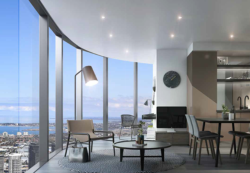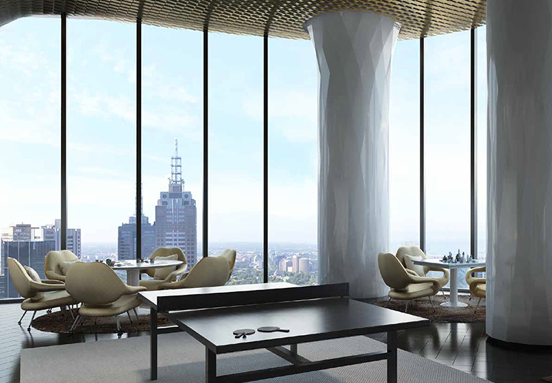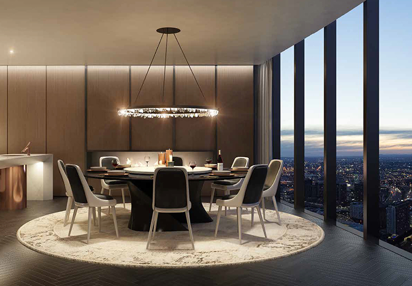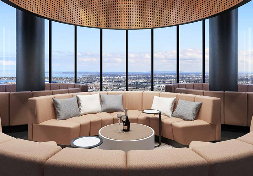 76层市中心巅峰视角,拥有全方位广阔观景角度的落地窗,尽收1公里范围内皇冠赌场、Emporium购物中心、Bourke商业街、Docklands海港区和Etihad体育馆等众多墨尔本顶尖风尚场所。
