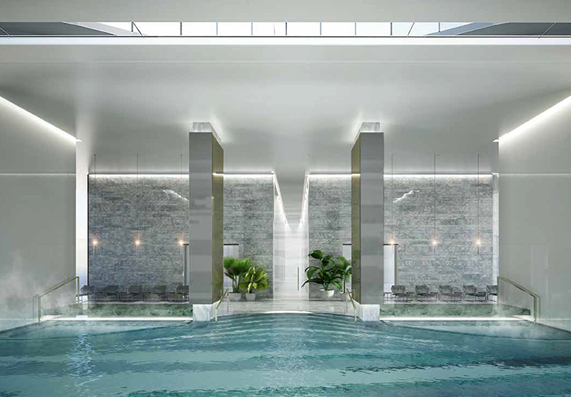 项目共配备了3个楼层的配套设施,包涵私人餐厅、酒吧、健身房、游泳池、水疗中心和剧院等。48层以上业主更能享受顶层的巅峰俱乐部,傲视全墨。
