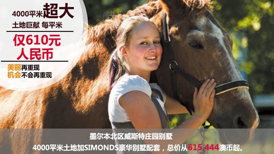 另外本次展会迈恩公司带来了真正的庄园别墅项目Ridgeland Acres, 项目位于墨尔本市中心北部37公里,离惠特尔西Whittlesea市政中心不到2公里,购物中心、医院、学校、运动场齐全,开车只需5分钟左右即可到达,之后可以沿着高速开车直达墨尔本市中心,用时约50分钟。此区域为大土地独立别墅区,土地面积最少为4000平米,最大土地面积为7.46英亩,约30000平方米,是不可多得的庄园项目-真的可以养马。