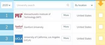与去年一样,常年霸榜世界前三名的学校分别是麻省理工、斯坦福和UCLA,毫无悬念。